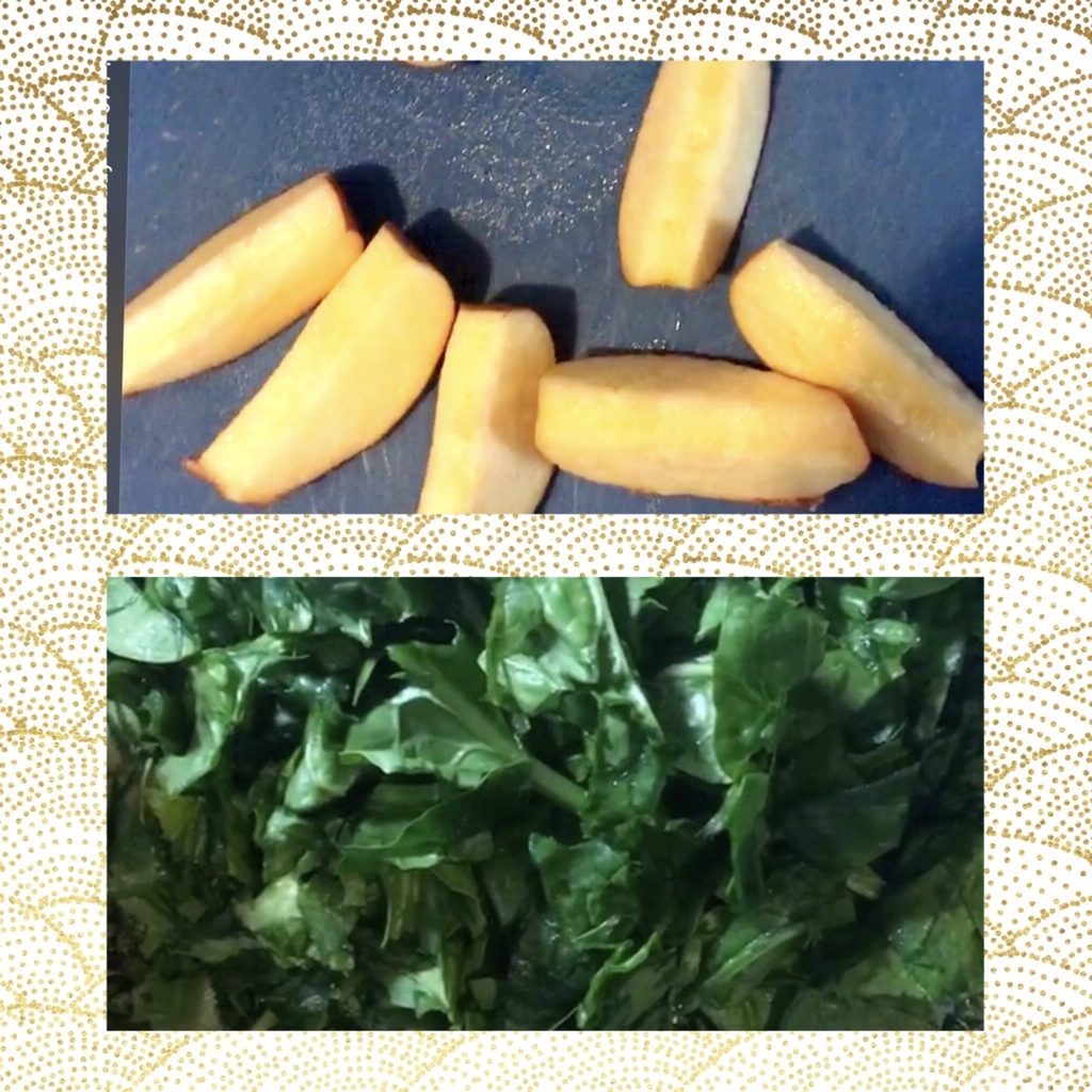 - Rough chop apple and spinach